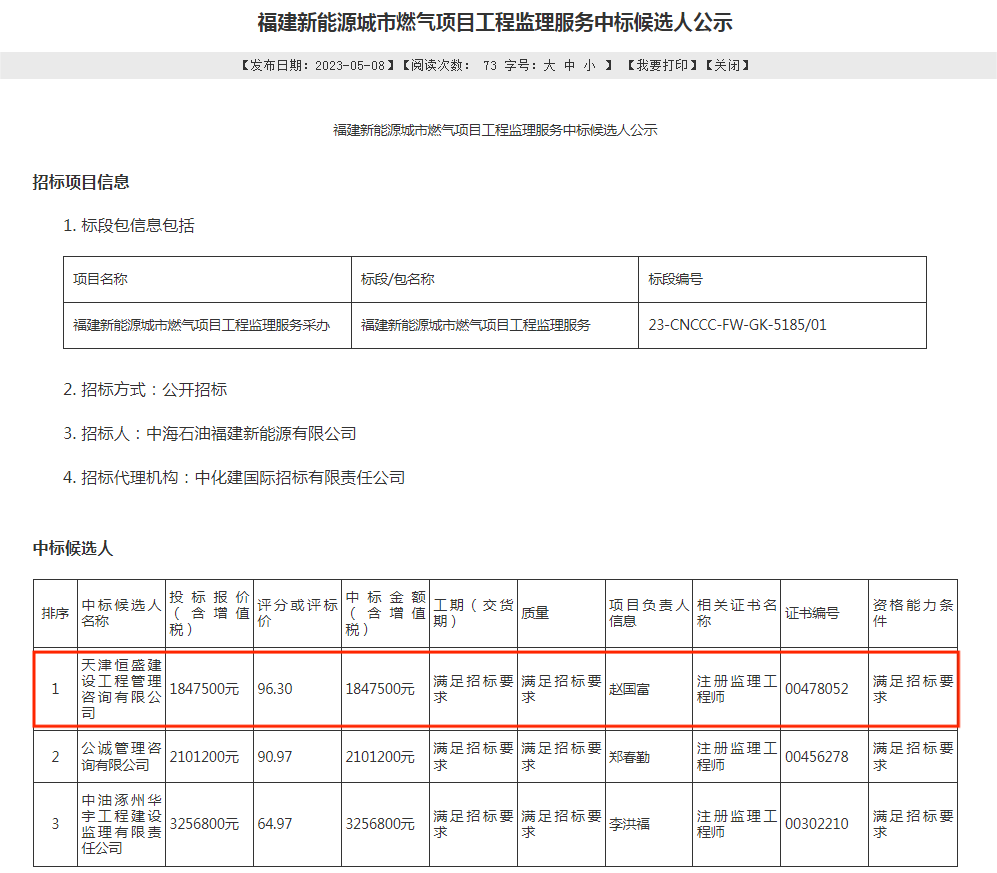 福建新能源城市燃气项目工程监理服务采办